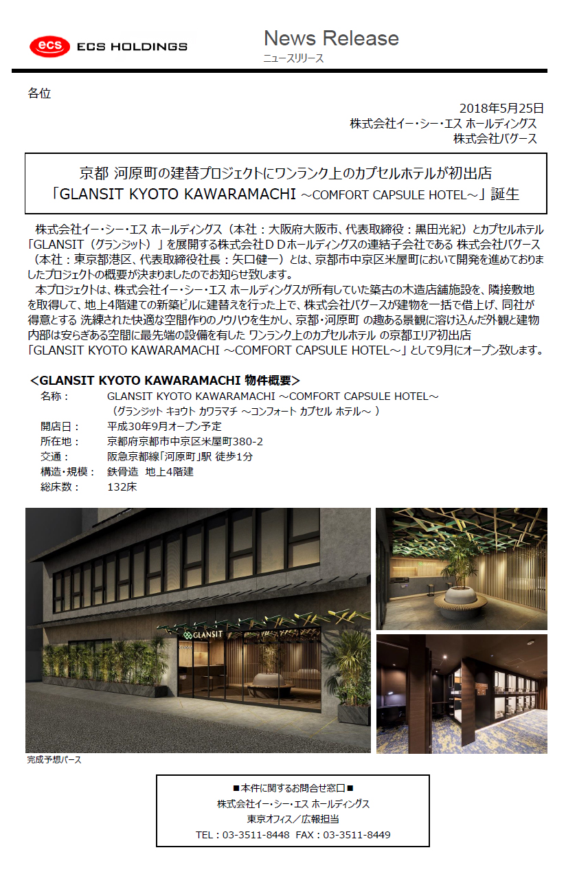 商業施設建替プロジェクト(京都市河原町)につきまして、詳細が決定しましたのでお知らせします