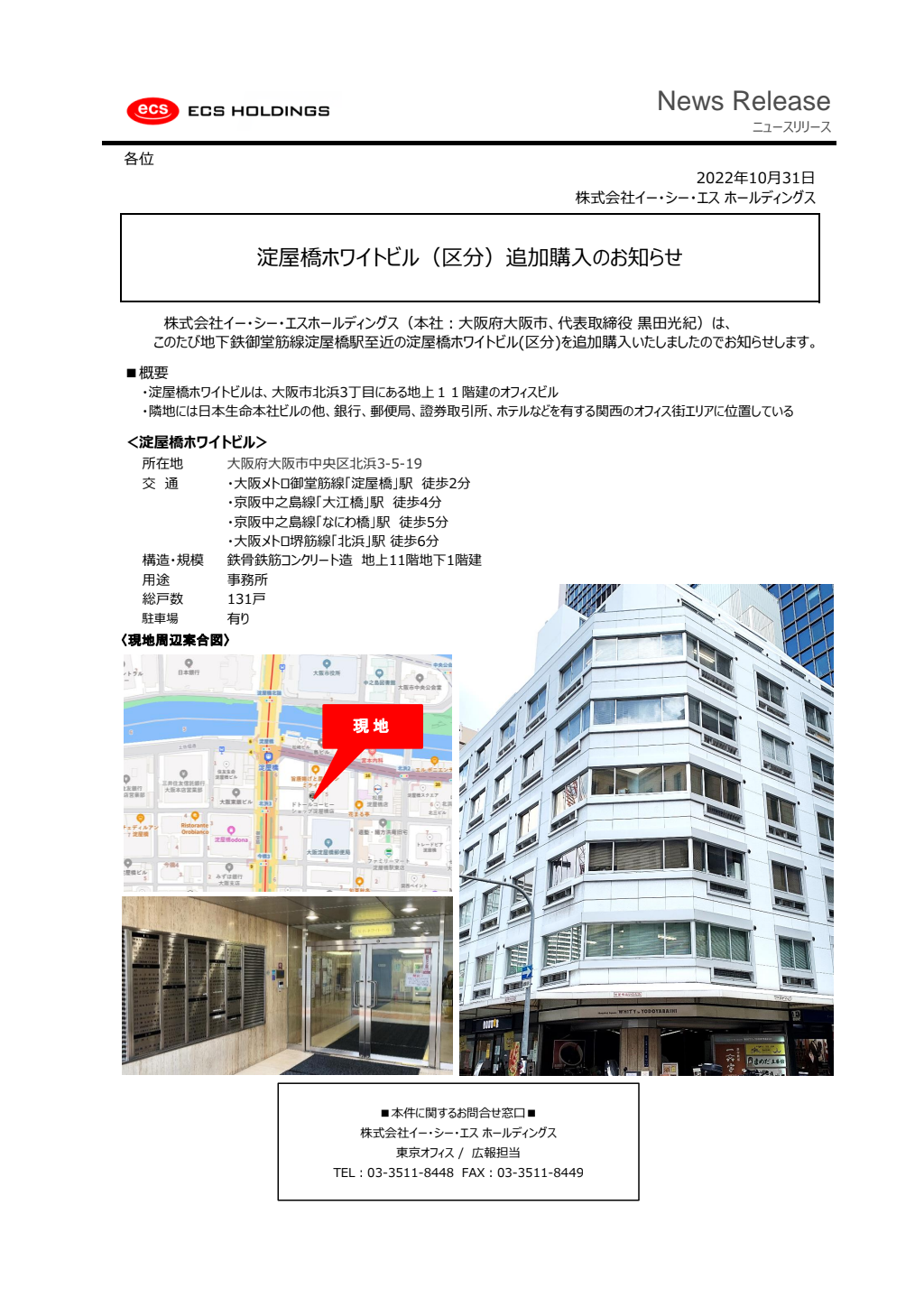 淀屋橋ホワイトビル(区分)追加購入のお知らせ