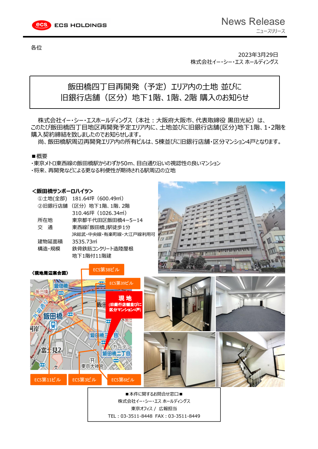 飯田橋四丁目再開発(予定)エリア内の土地並びに旧銀行店舗部分購入のお知らせ